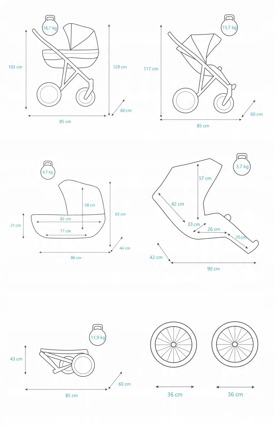 ✅ Размеры и важнейшие параметры коляски КУНЕРТ РОМАНТИК