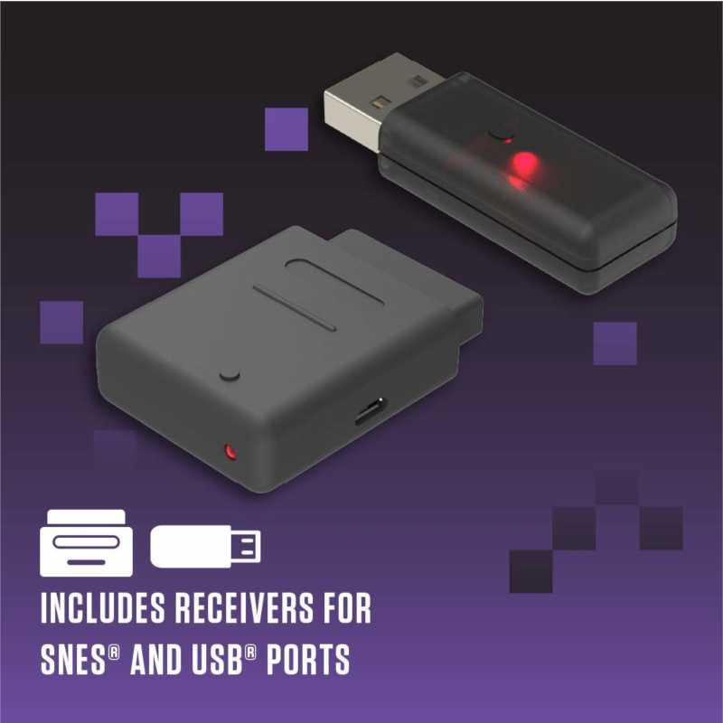 Современный и универсальный беспроводной геймпад 2,4 ГГц с двумя аналоговыми джойстиками, точной крестовиной и двумя приемниками, разработанный в классический стиль 16-битной эпохи.