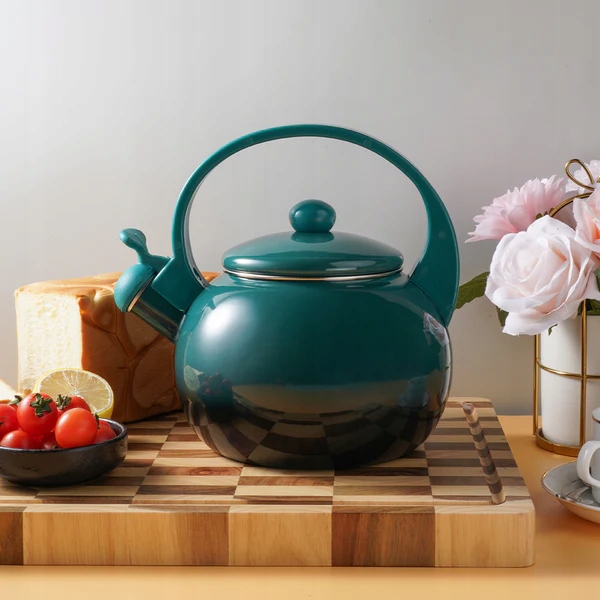 Эмалированный чайник в стиле ретро, 2,2 л, с газовой индукцией из углеродистой стали Green Whistle