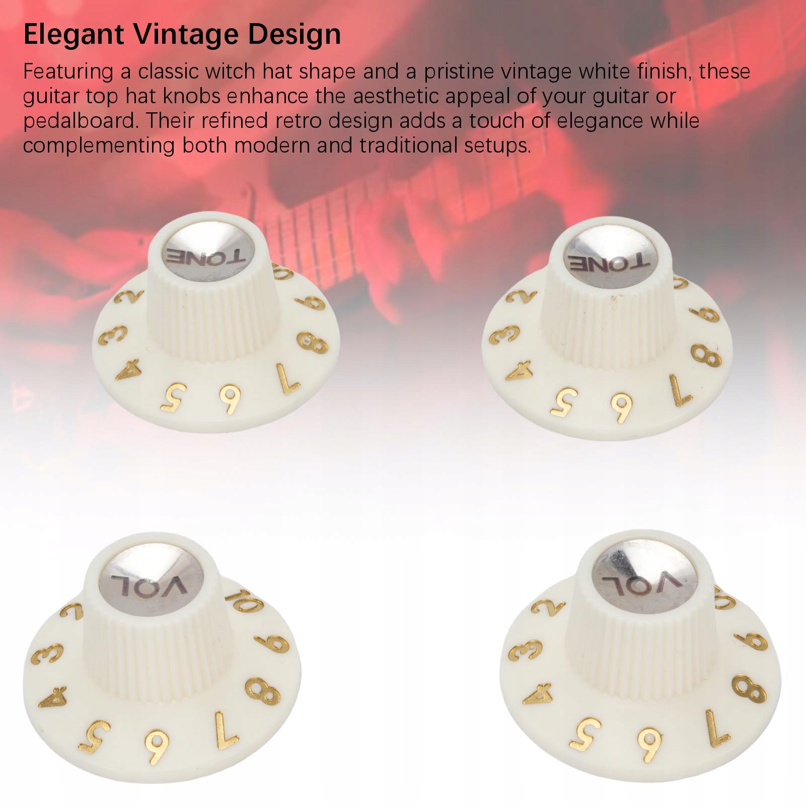 4. Элегантный винтажный дизайн. Ручки гитарного колпачка классической формы и безупречной белой винтажной отделки подчеркивают эстетическое очарование вашей гитары или педалборда. Их изысканный ретро-дизайн добавляет нотку элегантности, дополняя как современные, так и традиционные интерьеры.