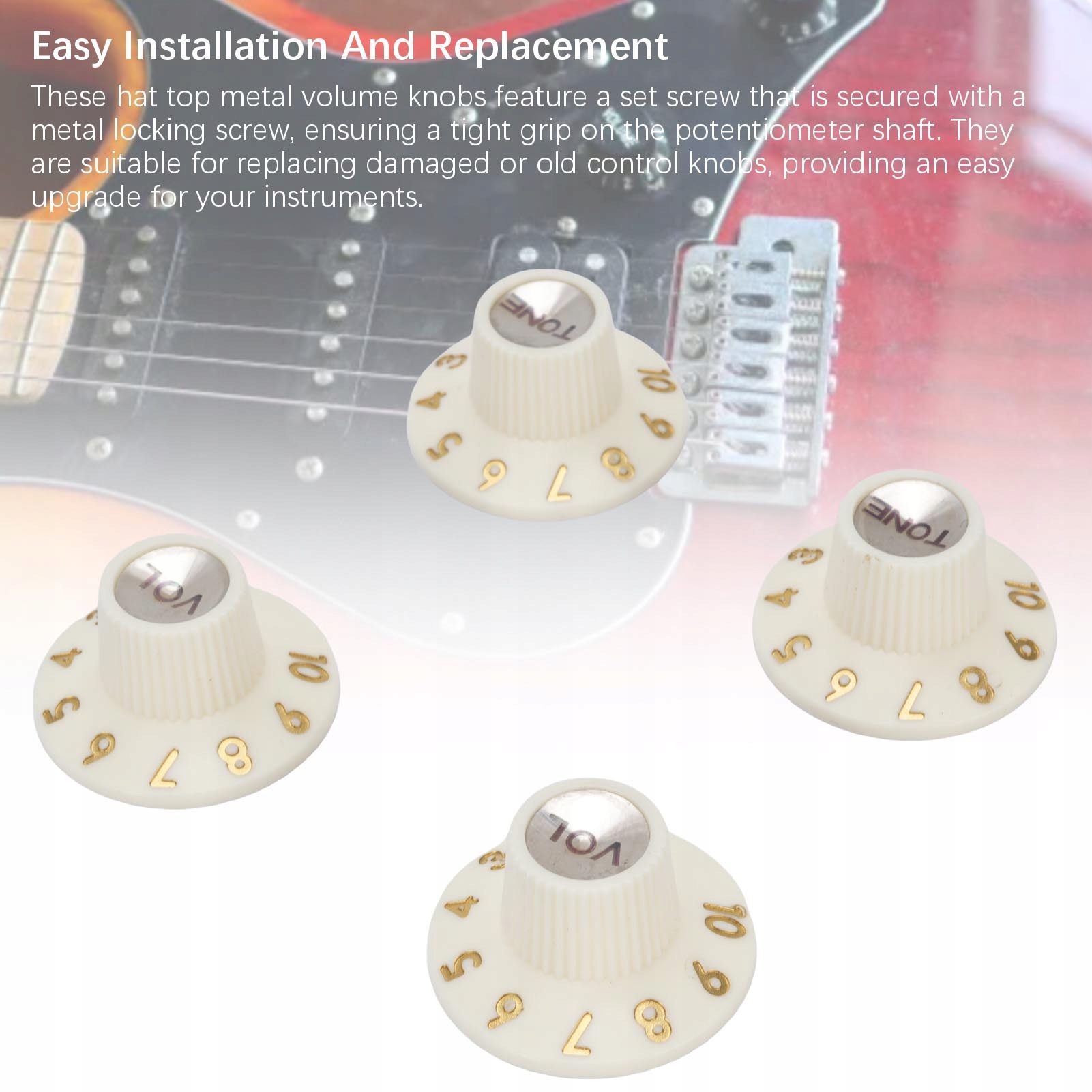 3. Простая установка и замена: Эти ручки регулировки громкости с металлическим колпачком оснащены винтом, закрепленным металлическим стопорным винтом, обеспечивающим плотное сцепление с валом потенциометра. Они подходят для замены сломанных или старых ручек управления, что позволяет легко обновить ваши инструменты.