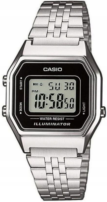 Элегантные и стильные часы для женщин, надежные watch casio la680wea-1ef из популярной серии Casio Vintage. Оригинальные ретро -часы в красивой прямоугольной серебряной конверте на стальном браслете. Цифровые часы с жидкокристаллическим дисплеем и полезными функциями, такими как вечный календарь, будильник или секундомер. Дисплей управляет кварцевым механизмом, питаемого с серебряной батареей с срок службы 2 года. Один из самых популярных женских цифровых часов.
