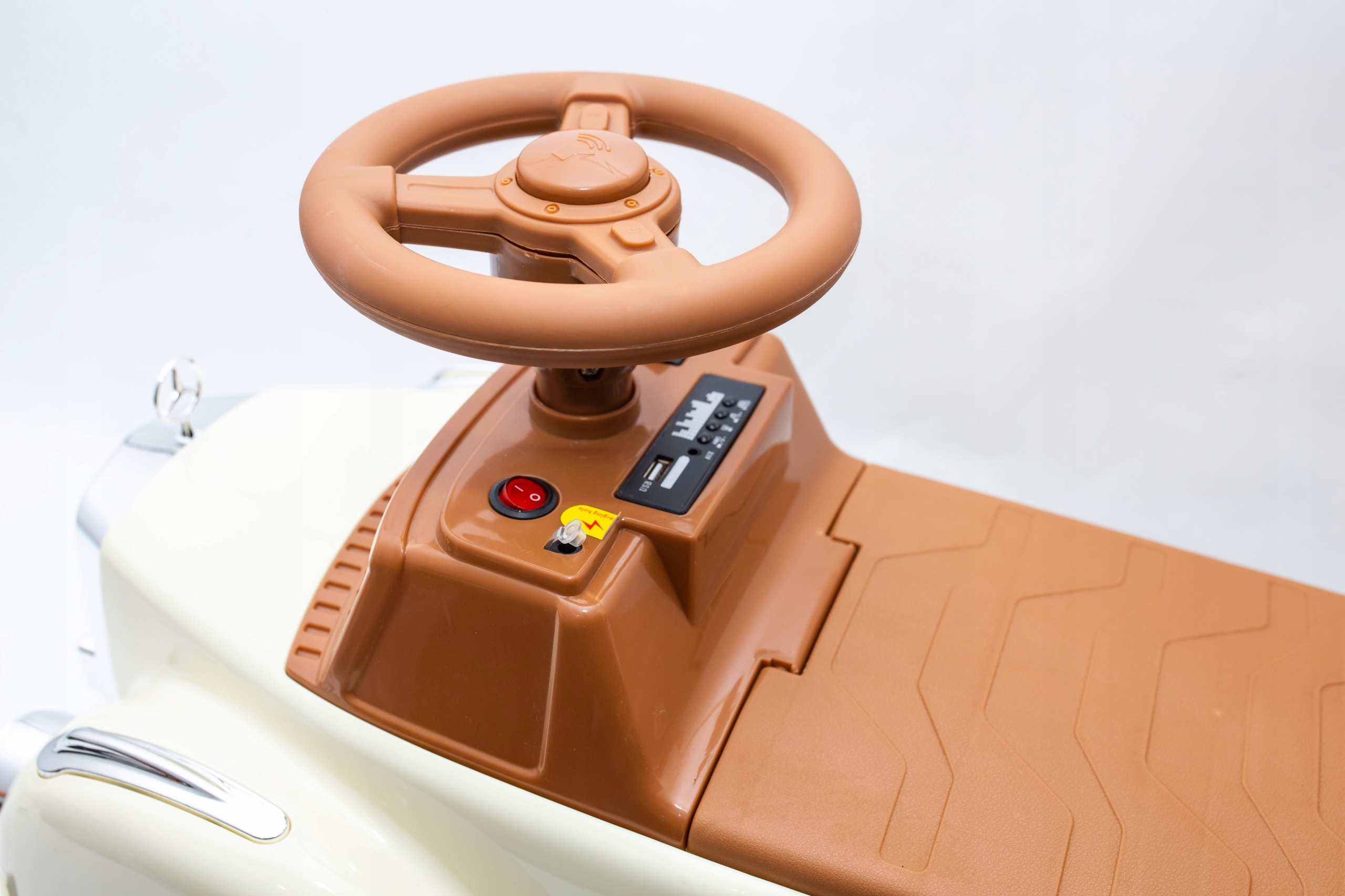 Кабина райдера оборудована главным выключателем, музыкальной панелью с прозрачным индикатором заряда аккумулятора. Кроме того, у нас есть переключатель направления вперед/назад