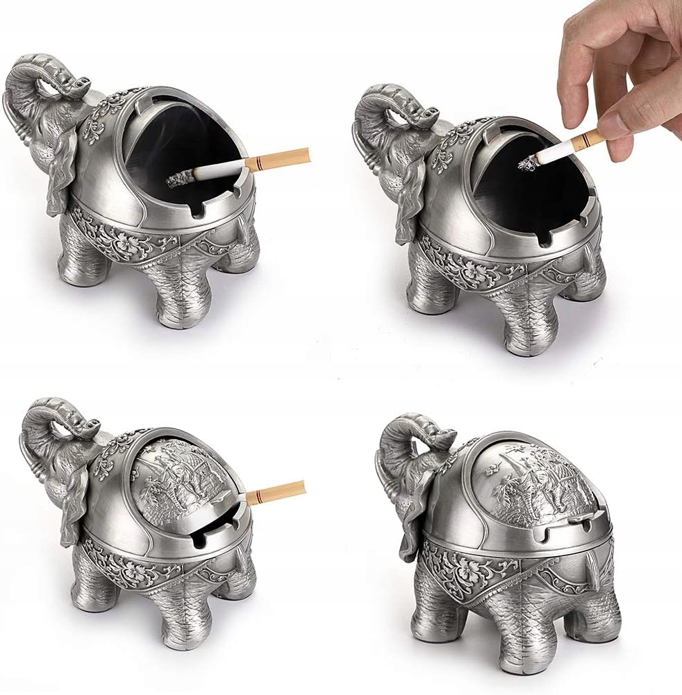 МЕТАЛЛИЧЕСКАЯ ПЕПЕЛЬНИЦА РЕТРО С КРЫШКОЙ В ФОРМЕ СЛОНА, ВЕТРОЗАЩИТНАЯ