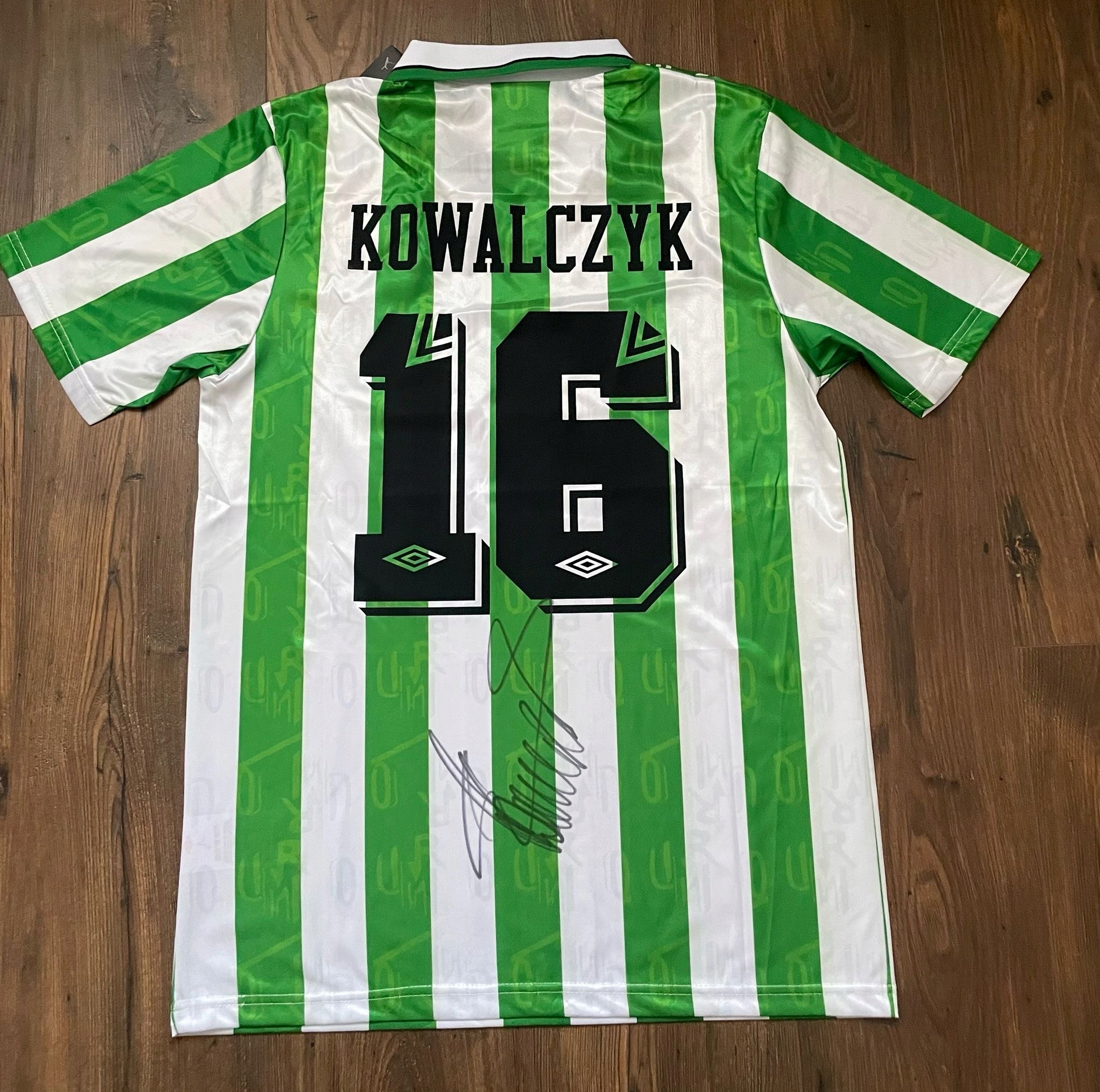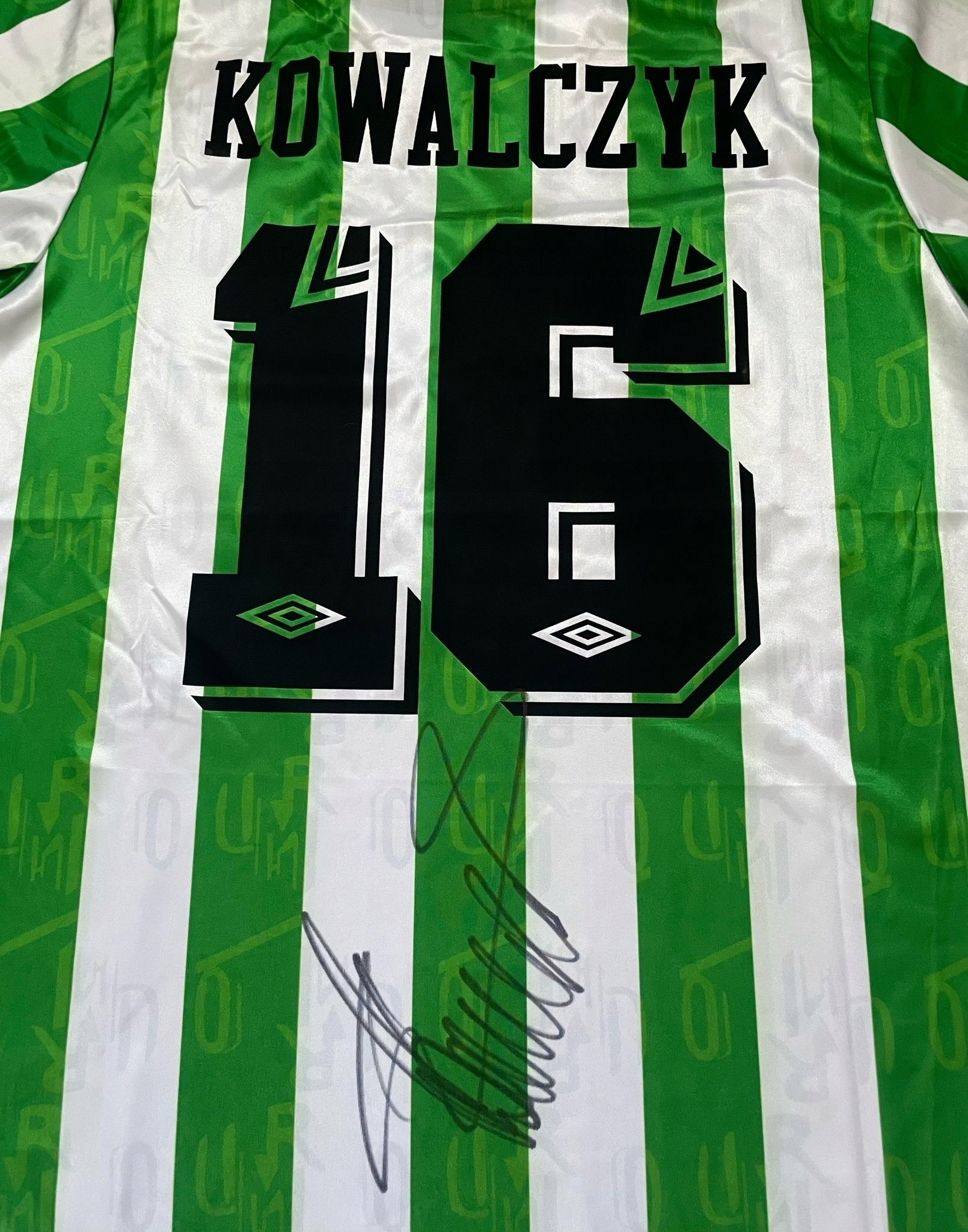 Рубашка Retro Real Betis с оригинальным автографом Wojciech Kowalczyk - уникальный сувенир для коллекционеров и футбольных фанатов!