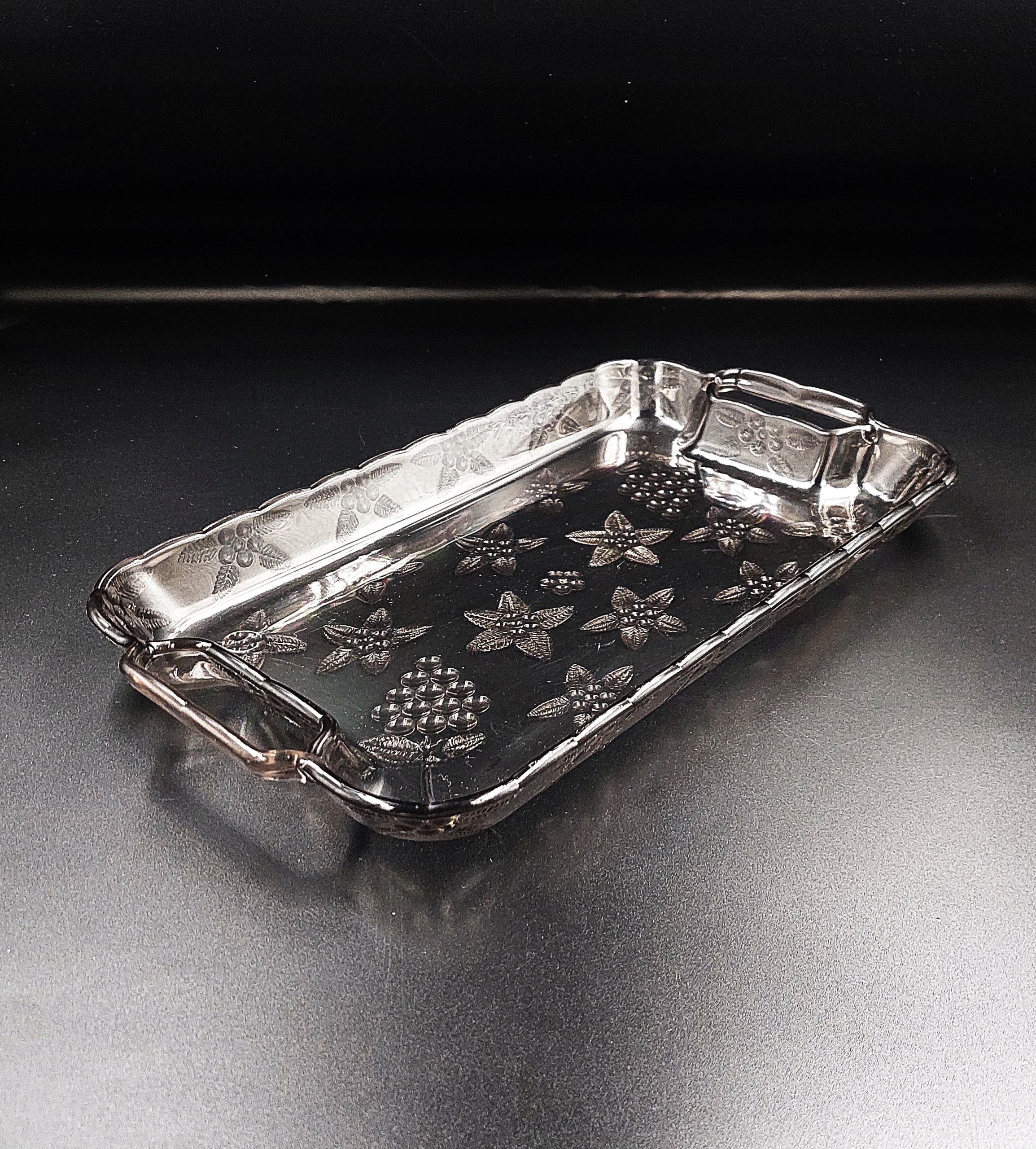 Retro tacka z uchwytami plastikowa tłoczony wzór winogrona vintage lata 80