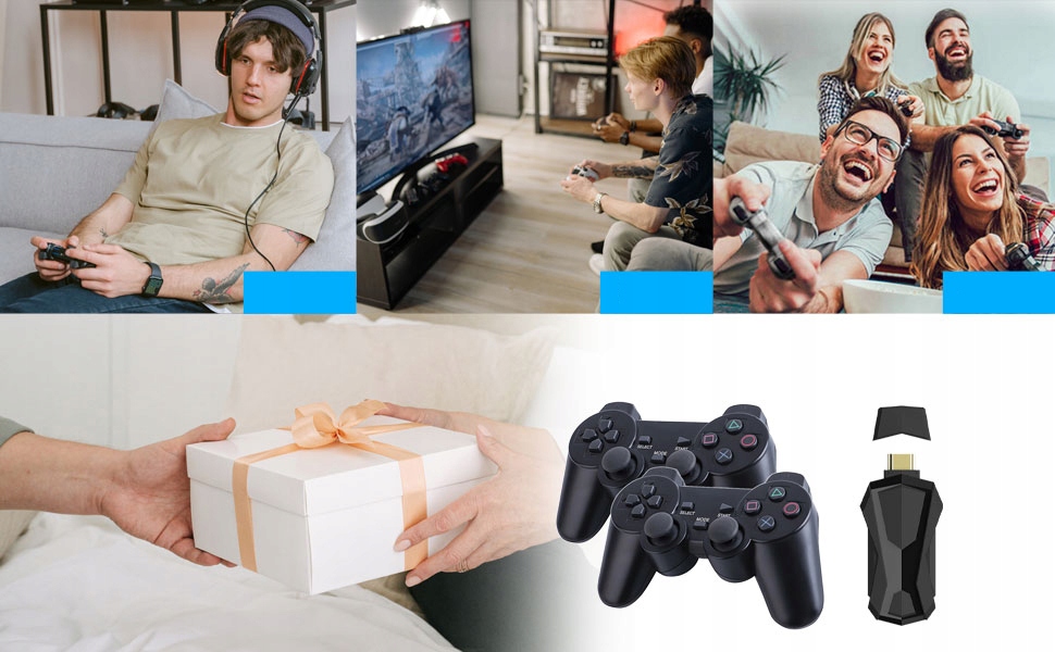 2 беспроводных контроллера: в 2 адаптерах, оснащенных 2 адаптерами беспроводных контроллеров 2,4 ГГц, поддержка технологичная, практически нулевое устройство, максимальное расстояние подключения — 33 фута (около 10 метров). Игровая консоль, позволяющая одновременно играть в игры двум людям, избегая запрещенного проводного подключения во время игр. (2 беспроводных разъема требуют установки 2 батарей типа ААА, которые не входят в комплект поставки).