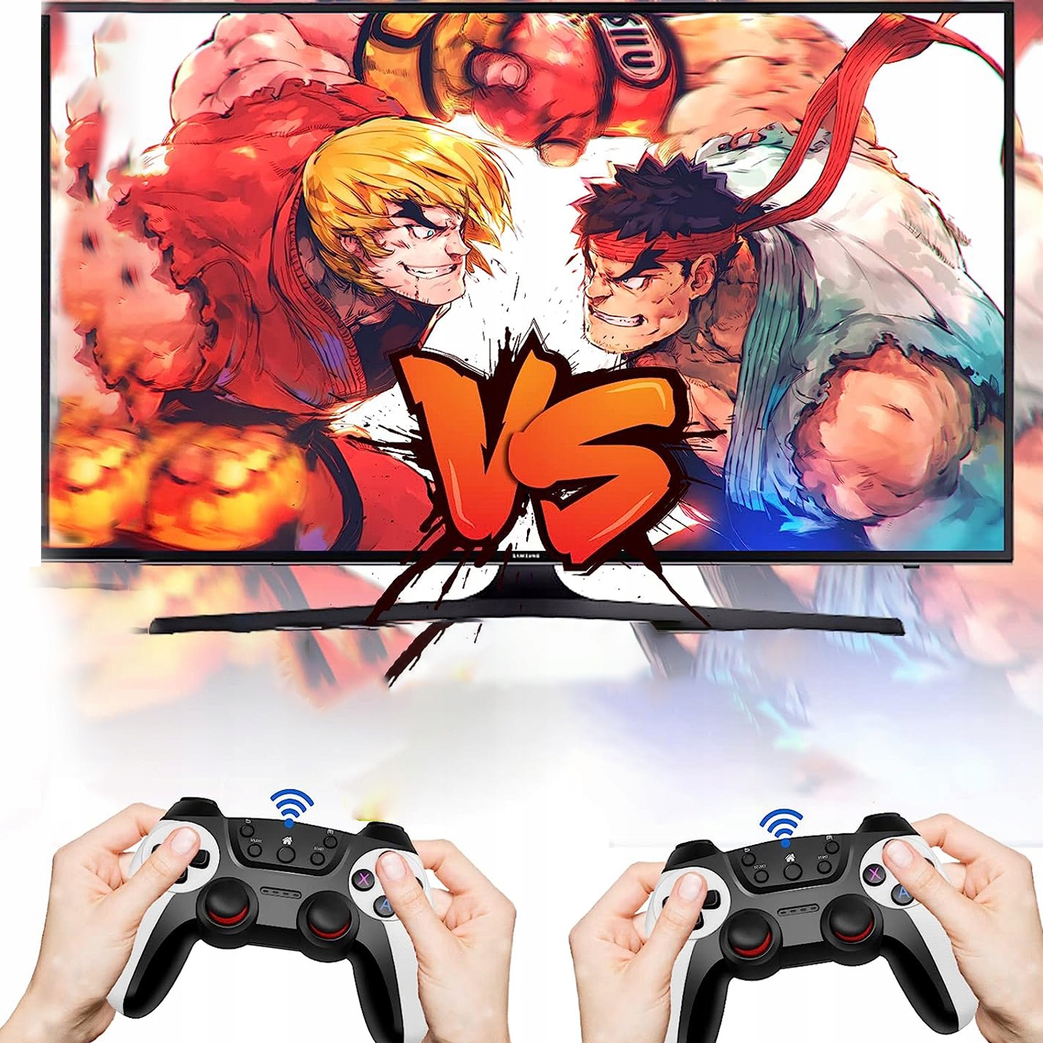 🌟- Оснащен беспроводным джойстиком 2,4G, которым можно управлять на большом расстоянии(Примечание: во избежание путаницы только один контроллер может выбирать игры, а другой контроллер может играть только в 2P-игры).