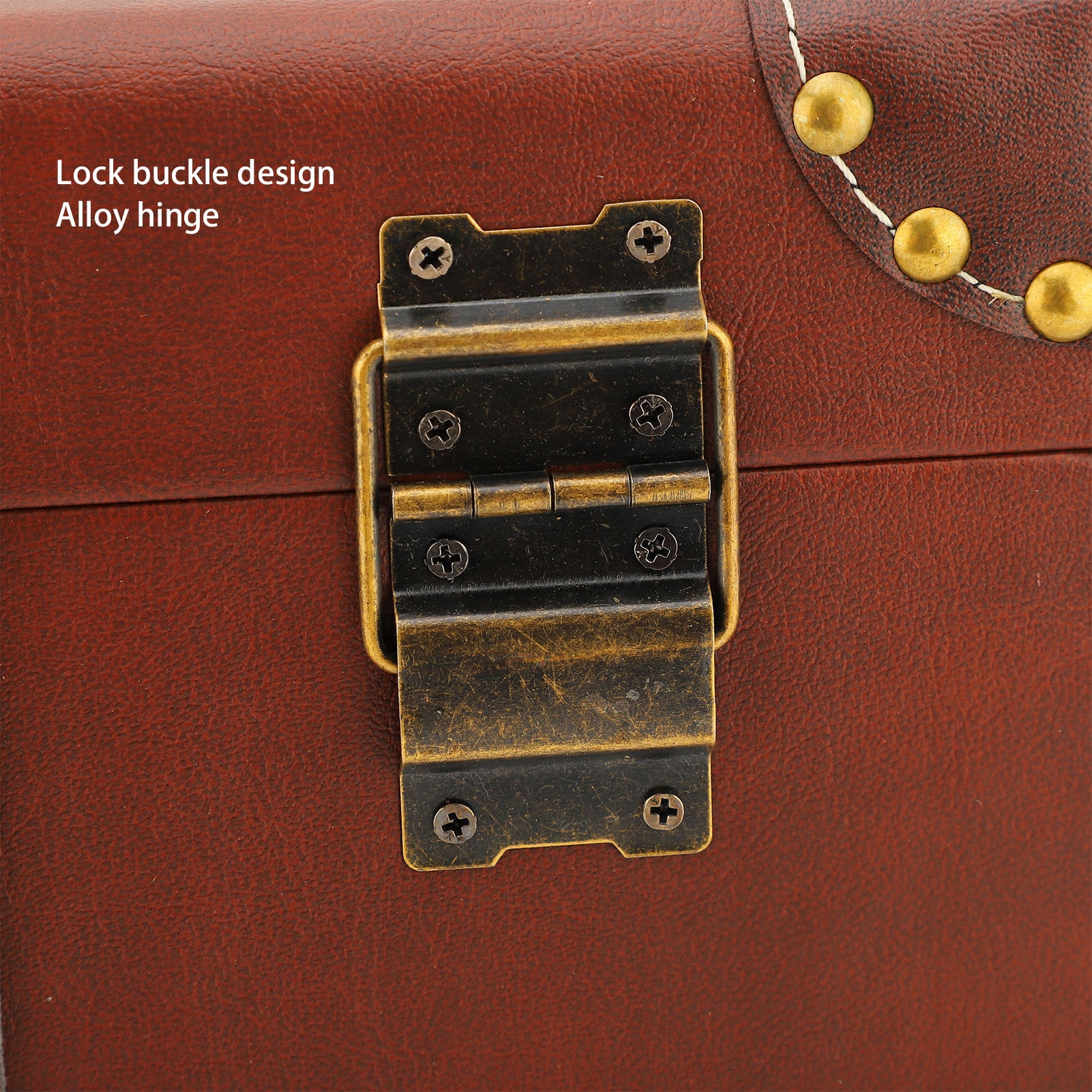 2. Винтажный металлический материал: каждая заклепка тщательно изготовлена, не только считая структуру чемодана, но и увеличивает внешний вид ретро -багажа, создавая уникальный и стильный вид.