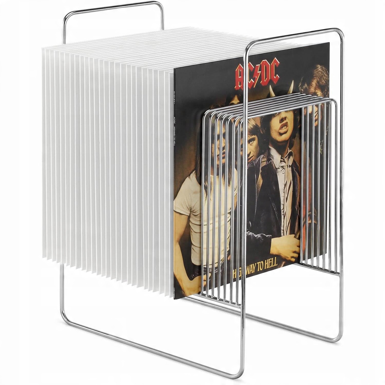 Эта стойка вмещает до 75 пластинок и изготовлена из прочного металла с порошковым покрытием, подходящего для стилей ретро и фьюжн.
