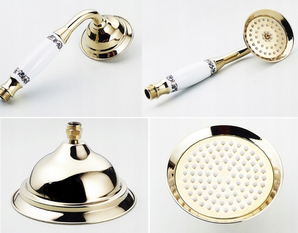 Стильный душевой набор Old Retro в цвете красивого полированного золота и декоративных узоры на керамике
