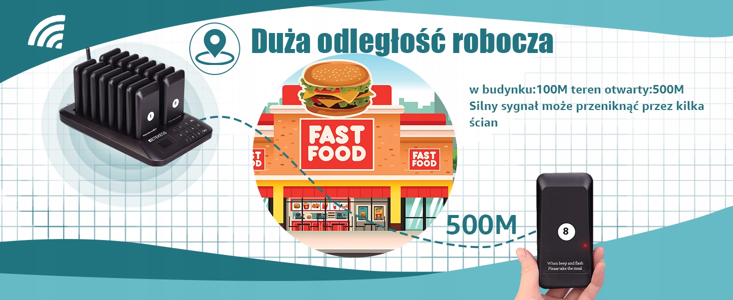 - Высокое расстояние; без Wi-Fi; Рабочее расстояние пейджера составляет около 300-500 м на открытом воздухе; Вам больше не нужно звонить клиенту для приема