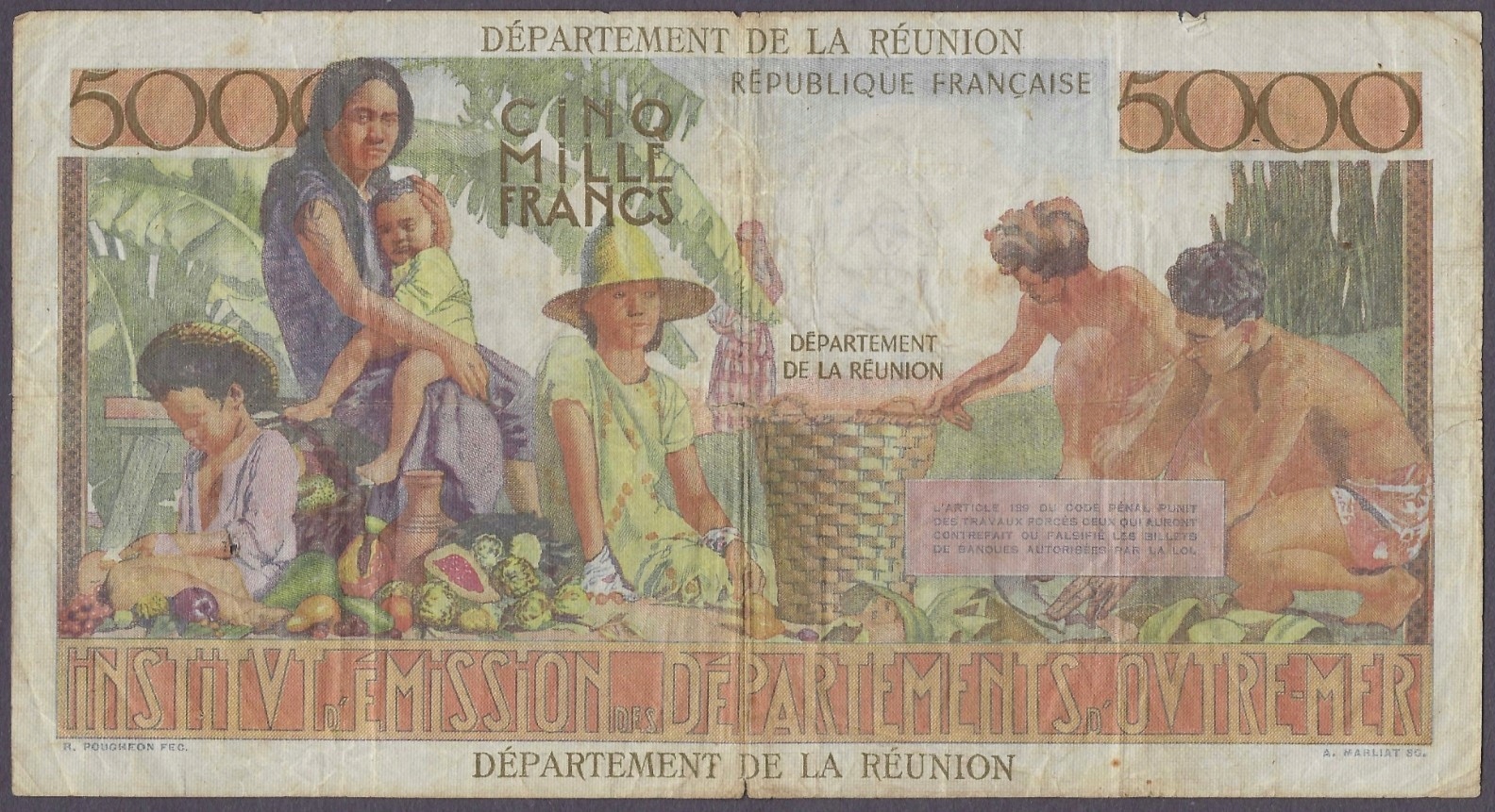 Reunion - 5000 franków 1967-71 (VG-VF)