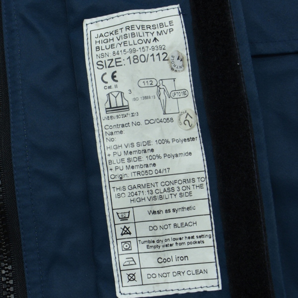 Оригинальная водонепроницаемая куртка британской армии. Изготовлен из высококачественного полиэстера + мембраны из ПТФЭ (MVP). Куртка двусторонняя - с одной стороны желтая со светоотражающими элементами, с другой синяя (темного оттенка). У него нет подкладки. Застегивается на молнию. Имеет четыре кармана с каждой стороны, все на липучке.