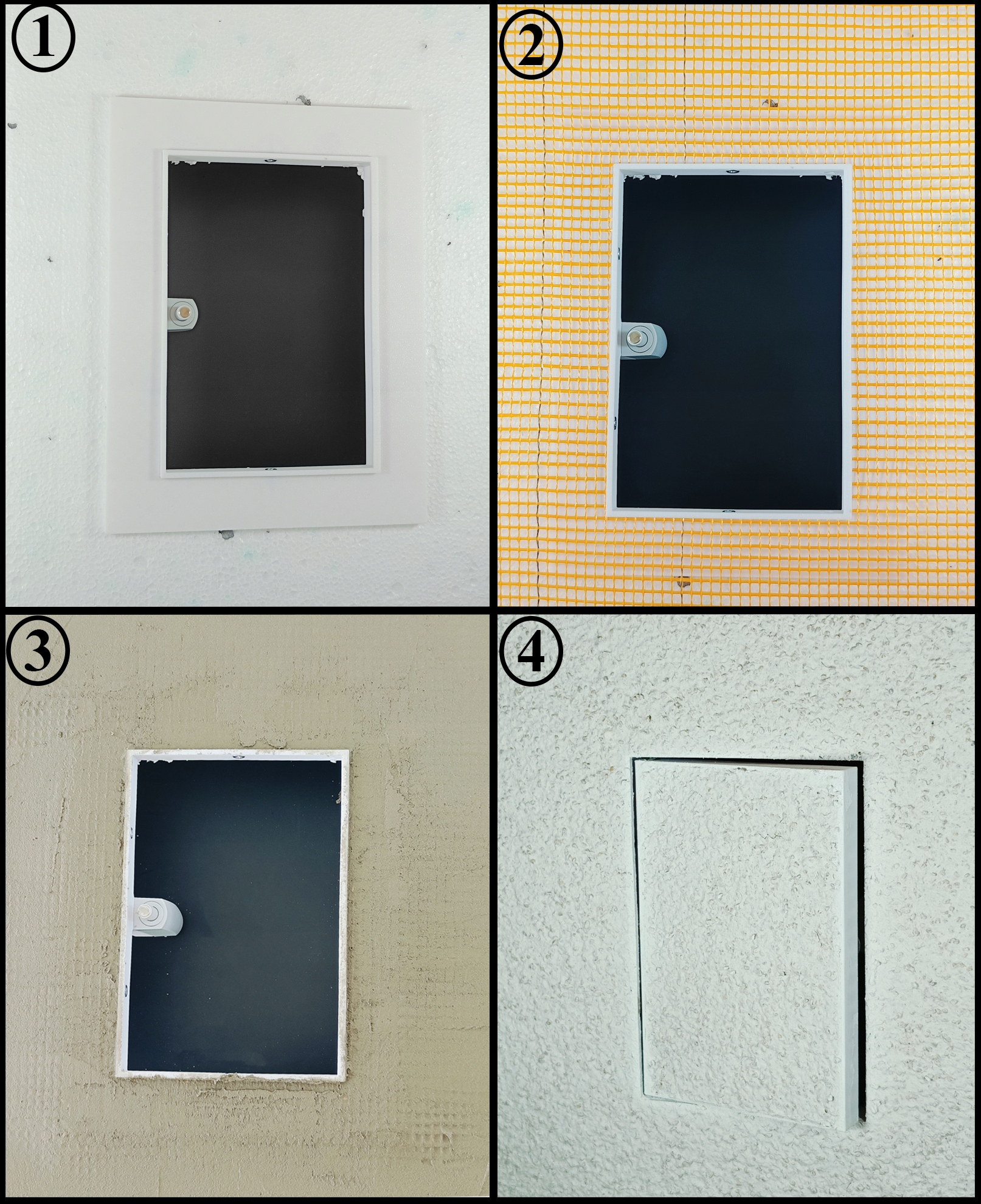 Фасад и фасадные двери 20х25 см - под штукатурку, с магнитным механизмом и системой быстрого демонтажа.