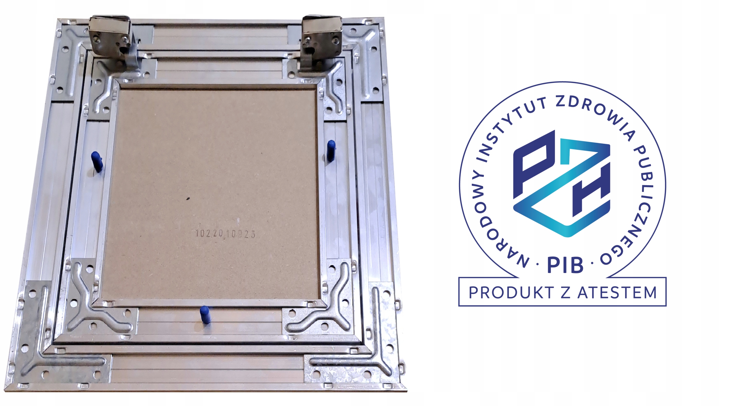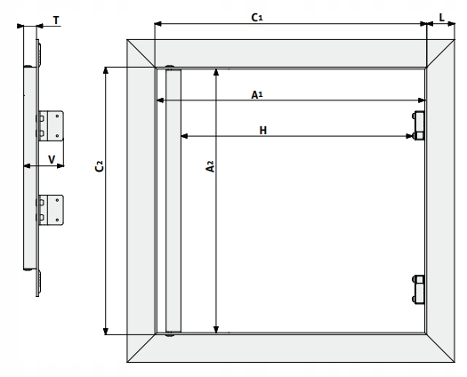 Полотно двери соединяется с коробкой при помощи двух постоянных петель, благодаря чему конструкция устойчива, а ревизию можно успешно монтировать в вертикальном положении, напр. на стене.