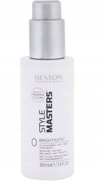 Revlon Style Masters Brightastic Serum 100 мл Блестящая тональная основа Revlon Style Masters Brightastic поможет вам укротить, дисциплинировать и разгладить волосы. Также она оказывает укрепляющее действие и маскирует дефекты структуры. Достаточно всего нескольких движений, чтобы ваша прическа распрямилась. выглядеть безупречно.Свойства: