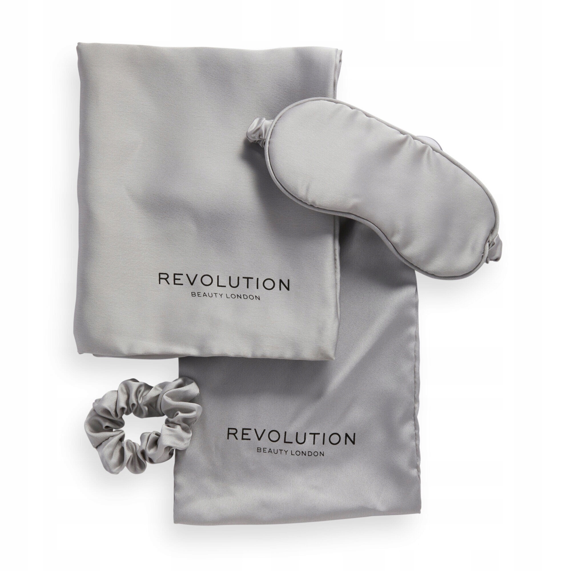 Идеальный роскошный комплект для ухода и защиты кожи и волос — Revolution Satin Sleep Set в серебристом цвете.