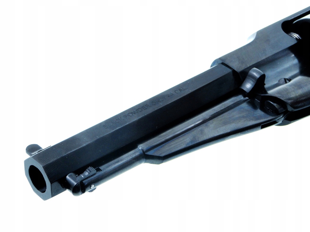 Remington 1858 New Model Army Sheriff .44, шестизарядный ударный револьвер с черным порохом от Remington калибра .44, дульнозарядное устройство с закрытой стальной рамкой из черной оксидированной стали.