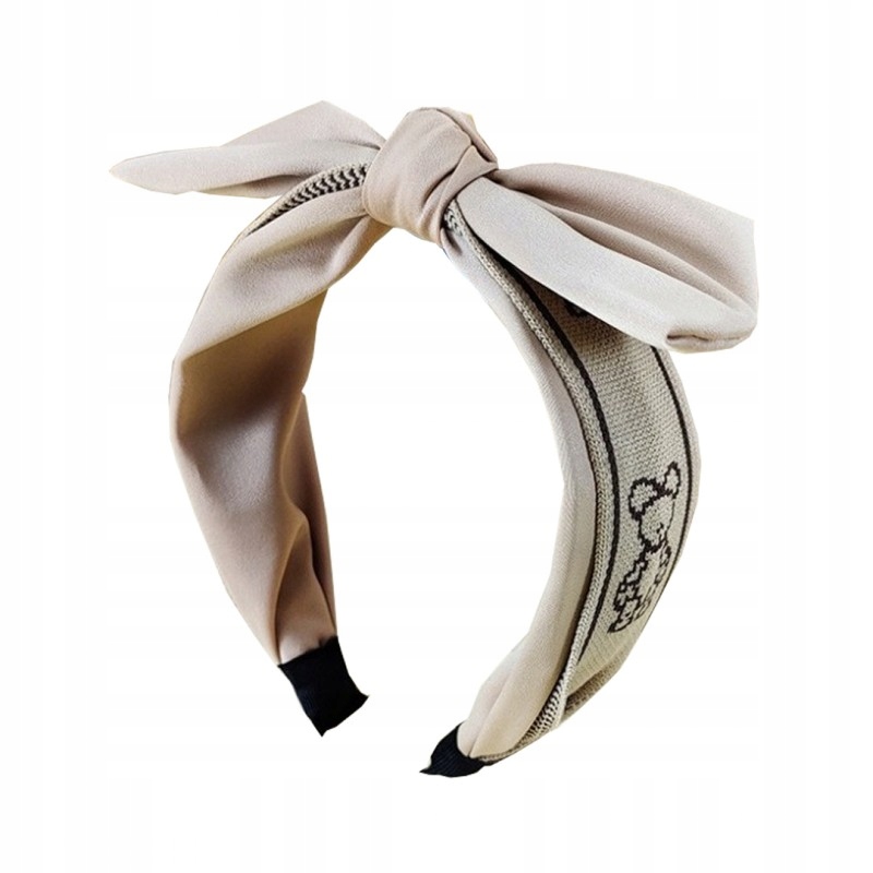 Повязка на голову ECarla - тюрбан для волос с бантом - бежевый с вышивкой 1 шт
