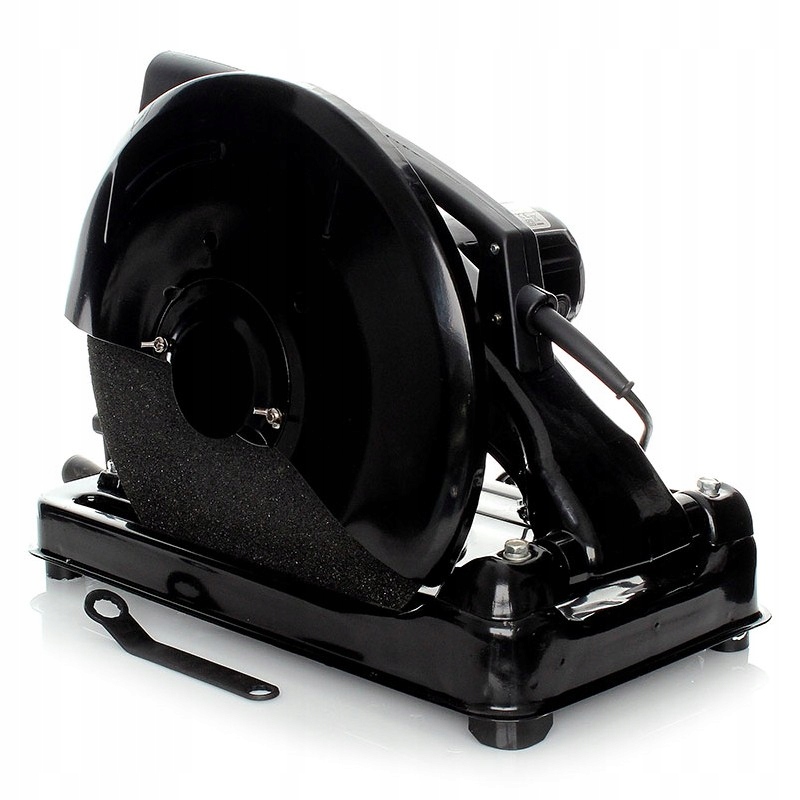 таких как железо, алюминий, медь, чугун и другие. Устройство оснащено мощным двигателем мощностью 3560 Вт. В комплект также входит отрезной диск по металлу диаметром 355 мм. Угол резания можно регулировать на 45 градусов вправо и влево. С помощью тисков мы можем обездвижить отрезанный