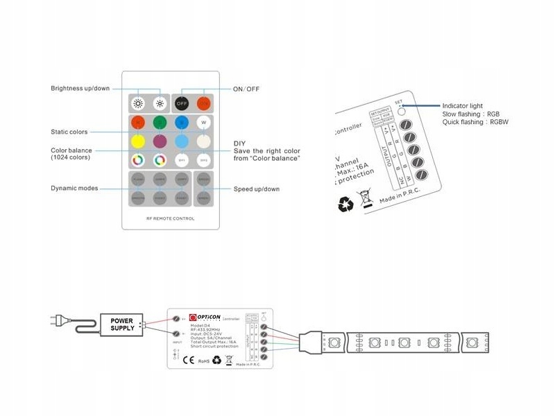 RGB / RGBW Opticon 16A 12V / 24V DC DC RF RF RF -контроллер контроллер контроллер