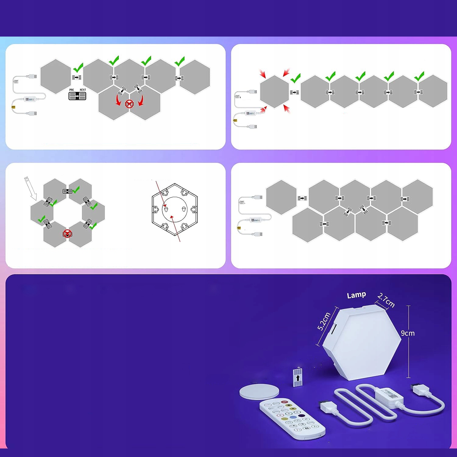 - ✔Интересная комбинация, сделанная своими руками: Мы подготовили для вас 10 независимых шестиугольных светодиодных стен. лампы, которые можно свободно комбинировать в различные интересные узоры и стимулировать безграничное воображение для создания вашего собственного, персонализированного, прохладного пространства.