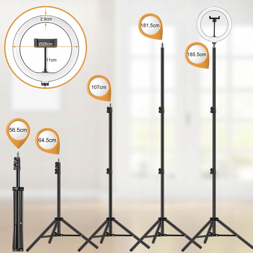 Кольцевая лампа обеспечивает ровное освещение , что важно для создания идеальных учебных пособий красоты и макияжа. Благодаря возможности регулировки цвета света и яркости, каждая деталь будет совершенно видна