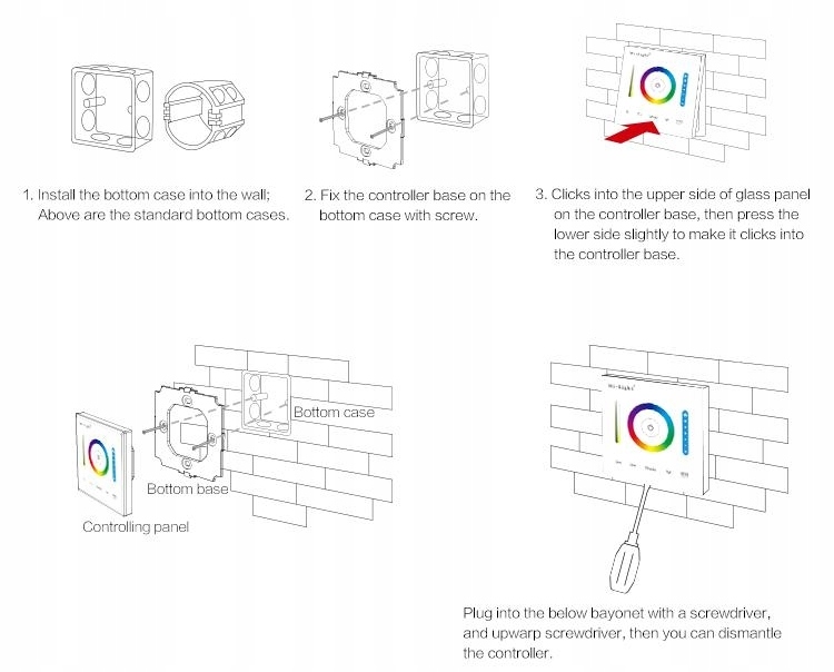 Настенный контроллер P3 СЕНСОРНАЯ панель скрытого монтажа от Mi-Light, модель P3 RGB, RGBW, RGB+CCT