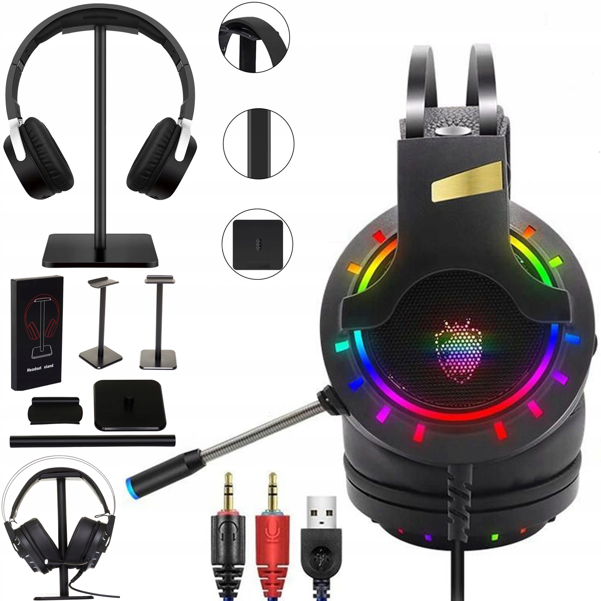 RGB LED ИГРОВЫЕ НАУШНИКИ ГЕЙМЕРЫ + ПОДСТАВКА ДЕРЖАТЕЛЬ