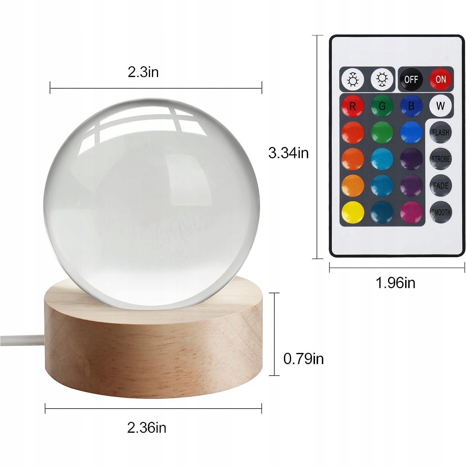✨️3D ночник Moon Crystal Ball, 16 цветов, 5 режимов освещения, деревянное основание с дистанционным управлением