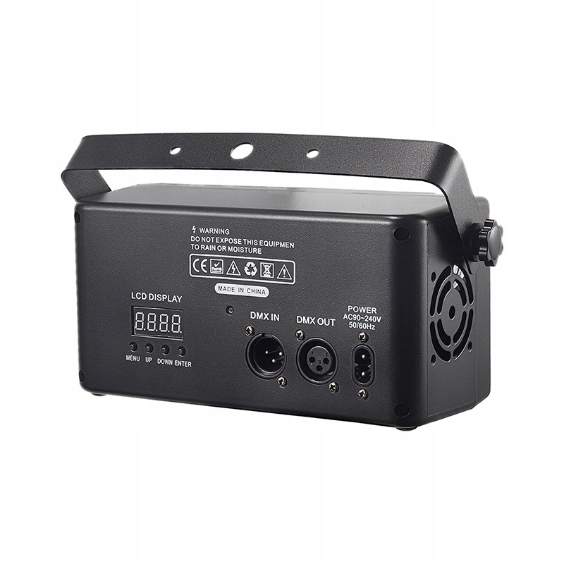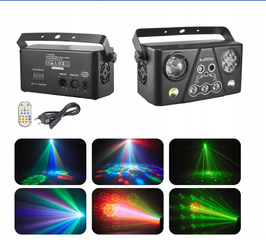 16 красных и зеленых лазерных узоров в сочетании с 3 вращающимися светодиодными узорами позволяют множество захватывающих комбинаций, создающих потрясающие визуальные эффекты и мгновенно зажигающих атмосферу мероприятия.
