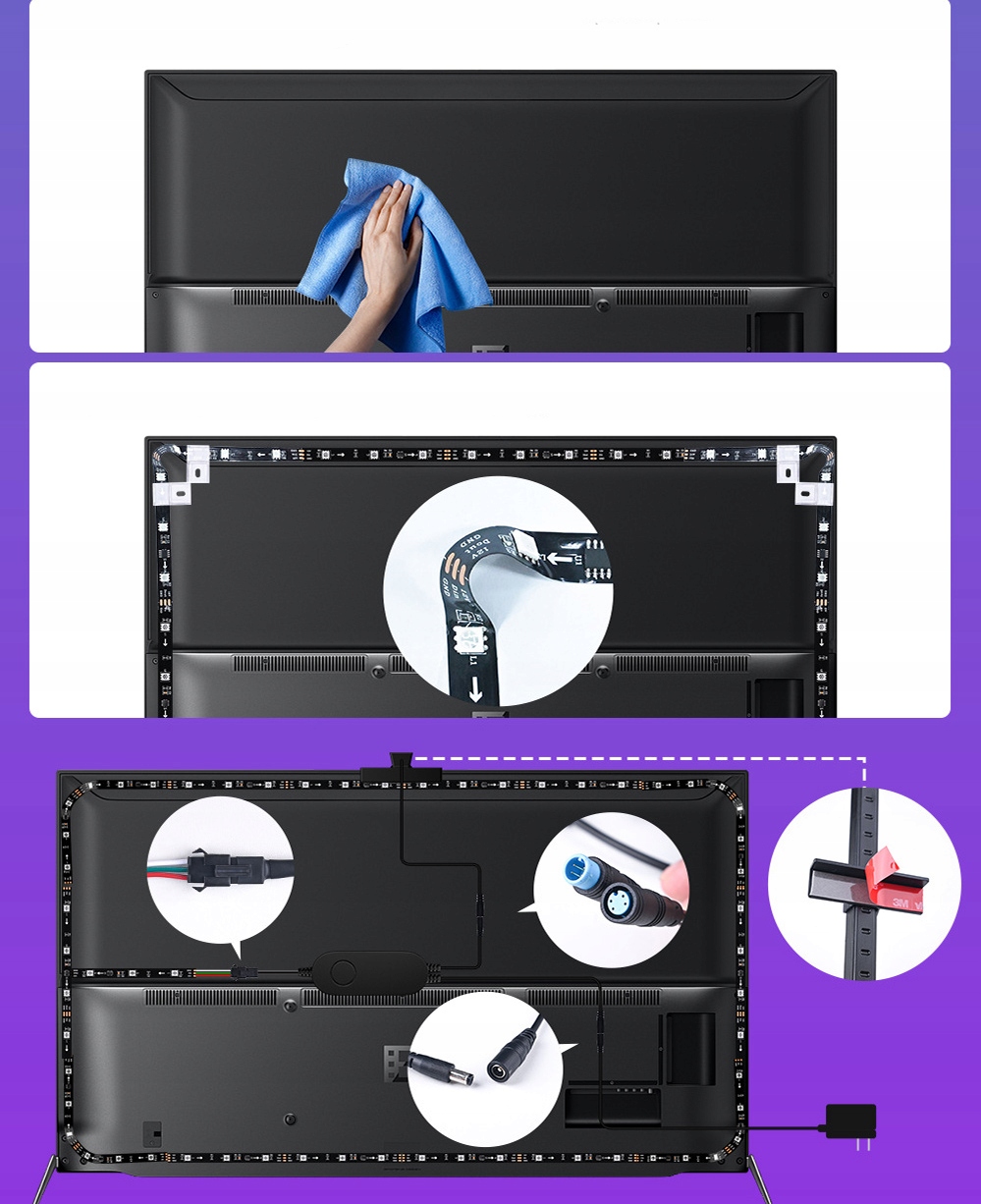 Увеличьте свой телевизионный опыт, наслаждайтесь многопользовательской светодиодной подсветкой. Светодиодные ленты синхронизируют от телевидения