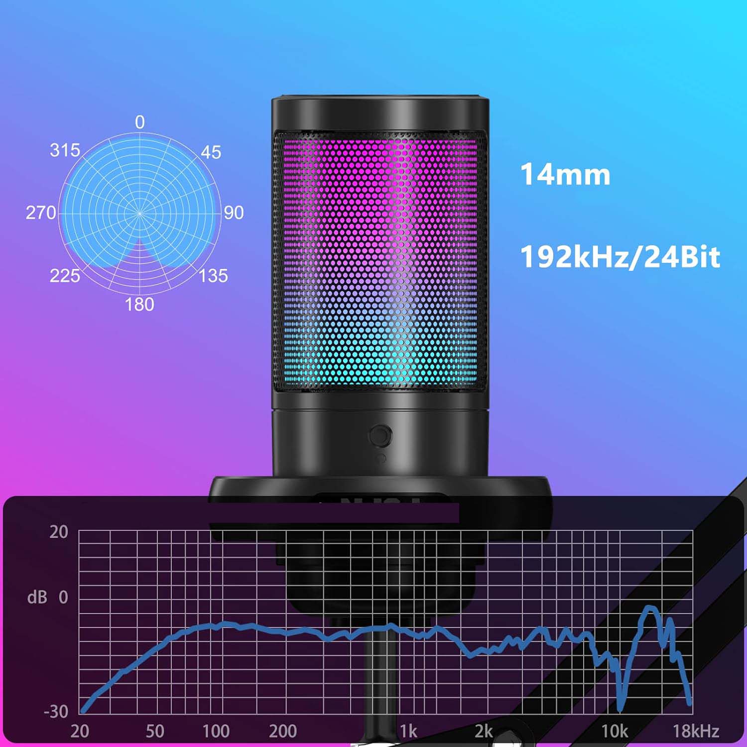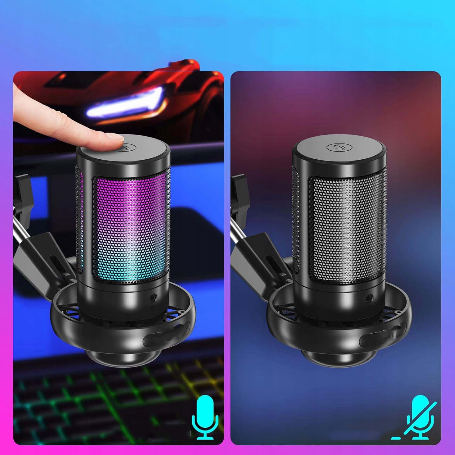 RGB -микрофон для USB -игрового компьютера емкостная рука с немалкой