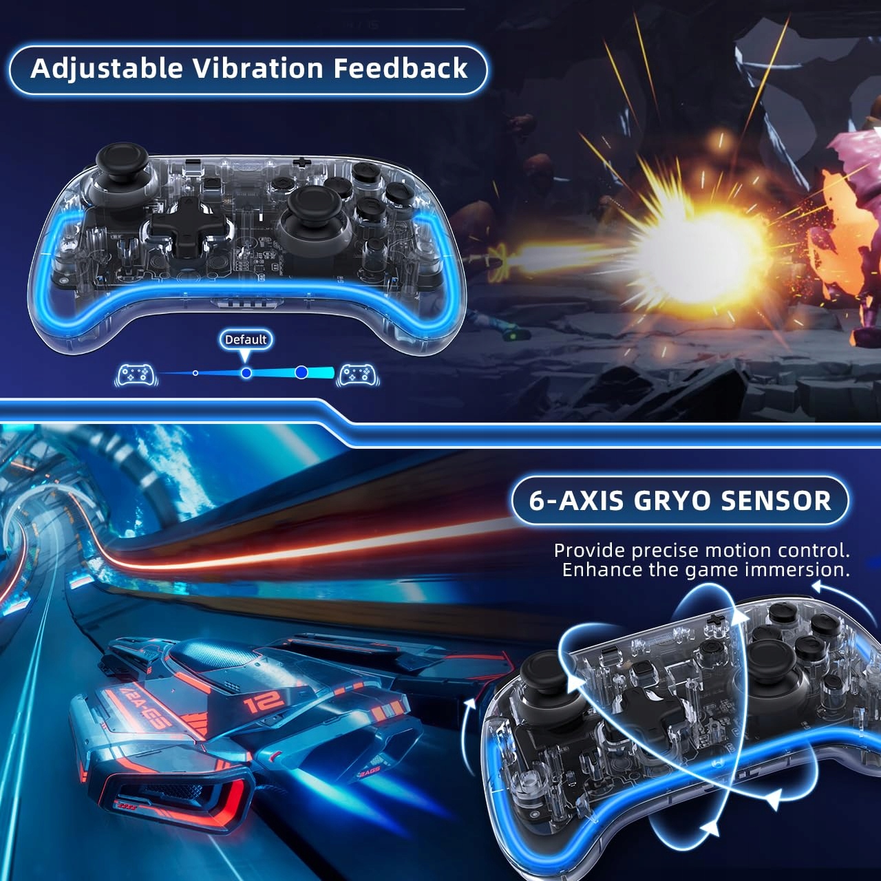 【Управление движениями】 Встроенный контроллер Шестиосевой гироскоп делает игру более увлекательной.