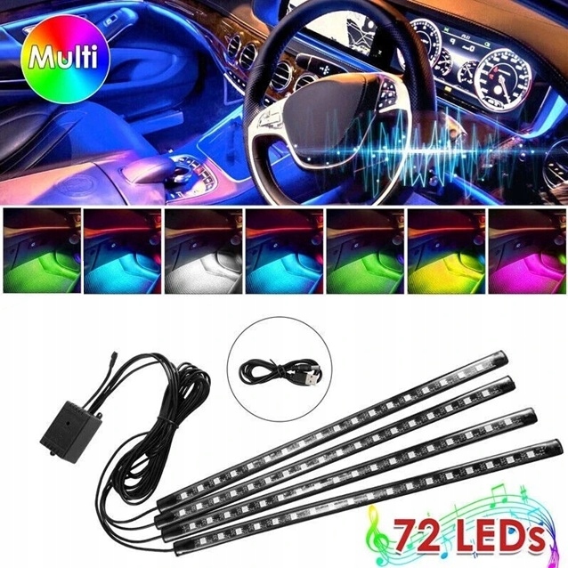 RGB ПІДСВІТКА САЛОНУ АВТОМОБІЛЯ LED СТРІЧКА ПІД НОГИ КЕРУВАННЯ ЧЕРЕЗ APP USB