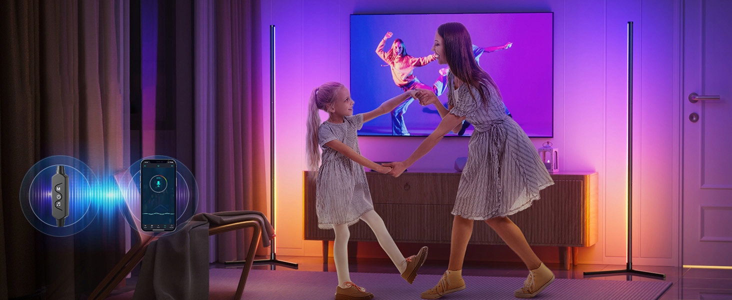 Разнообразие и гибкое управление приложениями, контроллер, голосовое управление и линейное управление делают угловую лампу удобными для использования в различных потребностях. Цвет и яркость тусклой угловой лампы будут изменяться одновременно с изменением музыки или вашего голоса, что создаст забавную, расслабляющую и позитивную атмосферу события.