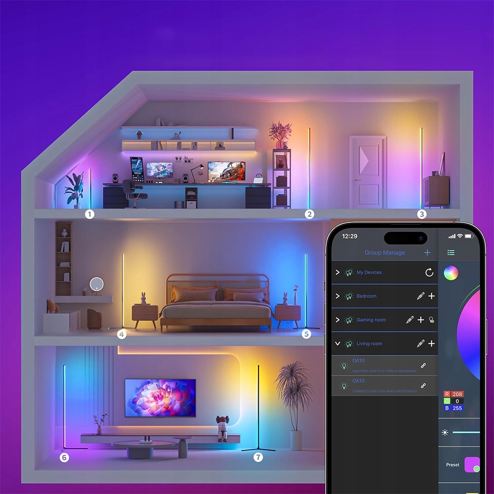 На этом этаже предлагается более 16 миллионов вариантов цвета и более 300 световых эффектов, включая прохладный белый, теплый белый и RGB. Отрегулируйте цвета каждого сегмента до природы, праздников и эмоций. Тень, изготовленный из высококачественного материала, обеспечивает равномерное распределение света и защищает глаза.