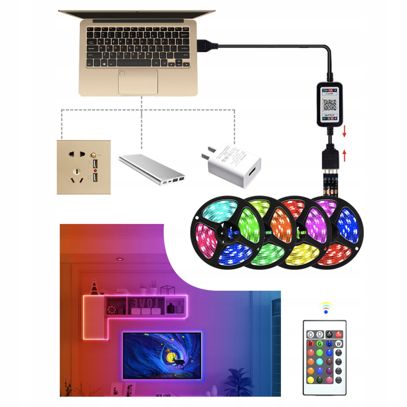 - 🌈 Светодиодная лента: 10 метров, светодиод 5 В