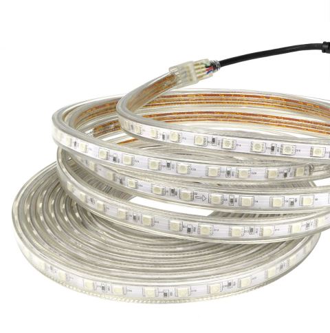 1м RGB светодиодная лента на 230В (это гарантирует отсутствие перепадов напряжения на концах ленты без использования источников питания, как в случае с лентами 12В)