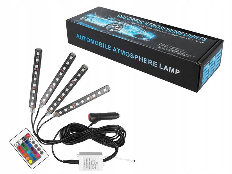 Внутреннее освещение автомобиля/салона, 4 x RGB 9 x Водонепроницаемая полоса + контроллер/пульт дистанционного управления/Проживание IP54. Технология освещения светодиод