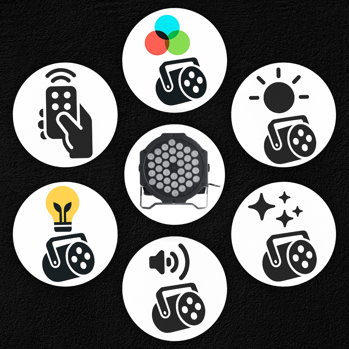 ➡️ 36 СВЕТОДИОДНЫХ ЛАМП RGB — насыщенные цвета, идеальные для любого пространства. Он отлично работает как в маленьких, так и в больших помещениях, создавая динамические световые эффекты.