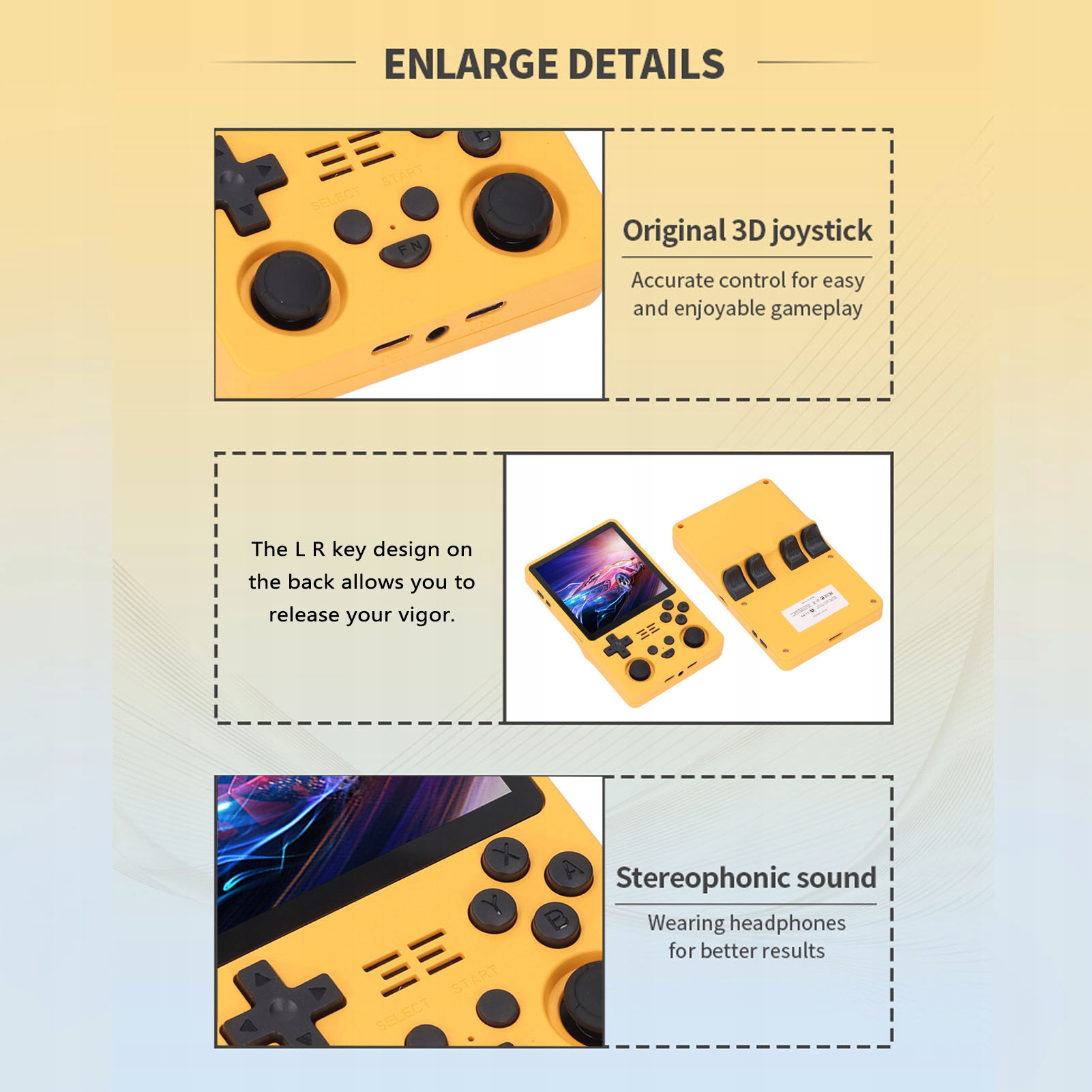 1. Двойные 3D-джойстики. Улучшите игровой процесс с помощью двух джойстиков и задних кнопок L R для лучшего управления и улучшения игрового процесса. Вы можете выбрать подходящий режим работы в зависимости от разных игр.
