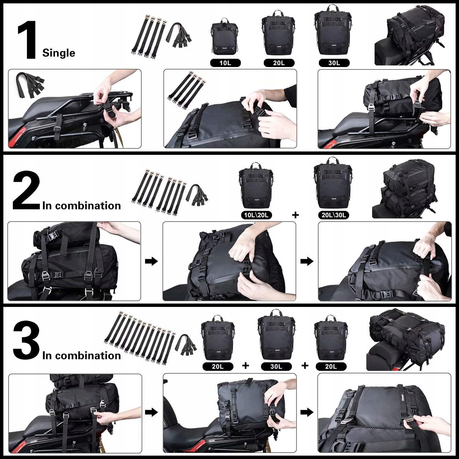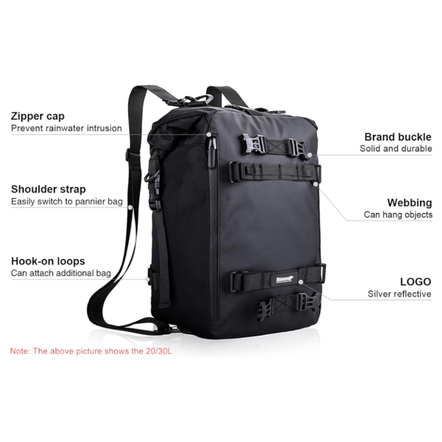 Сумка на заднее сиденье мотоцикла Rhinowalk — это идеальное сочетание функциональности и долговечности, что делает ее незаменимым спутником в путешествии. Эта водонепроницаемая сумка, доступная в размерах 10, 20 и 30 л, предназначена для мотоциклистов, которым необходимо надежное место для хранения и при этом выглядеть стильно.