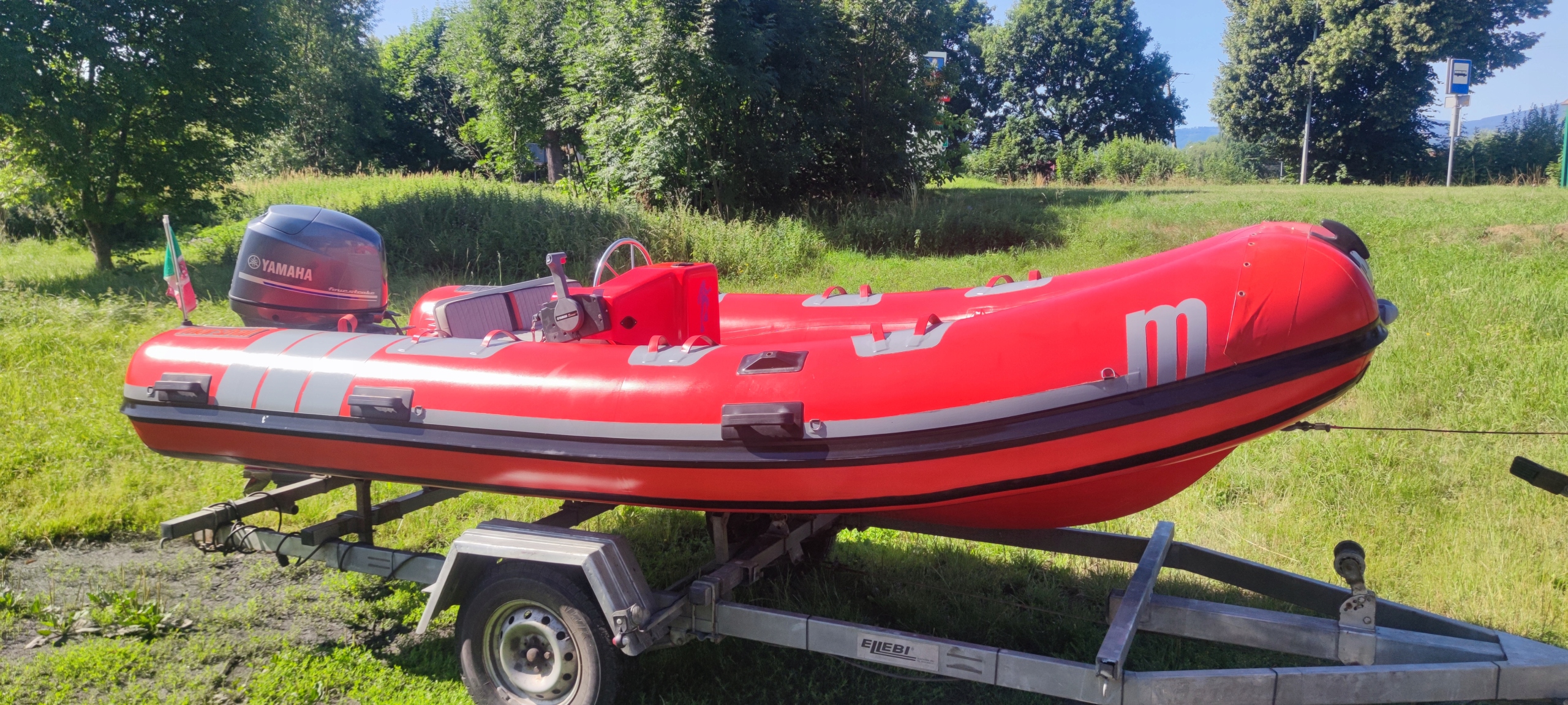 РИБ очень красивый, все 4 камеры удерживают воздух, дно в оригинальном гелькоуте без противообрастающей краски. Для Рибы предлагаю двигатель Yamaha мощностью 40/60 л.с. (4 цилиндра и объем 996 см), полный впрыск с силовой отделкой, тоже в очень хорошем состоянии, 2010 года выпуска.