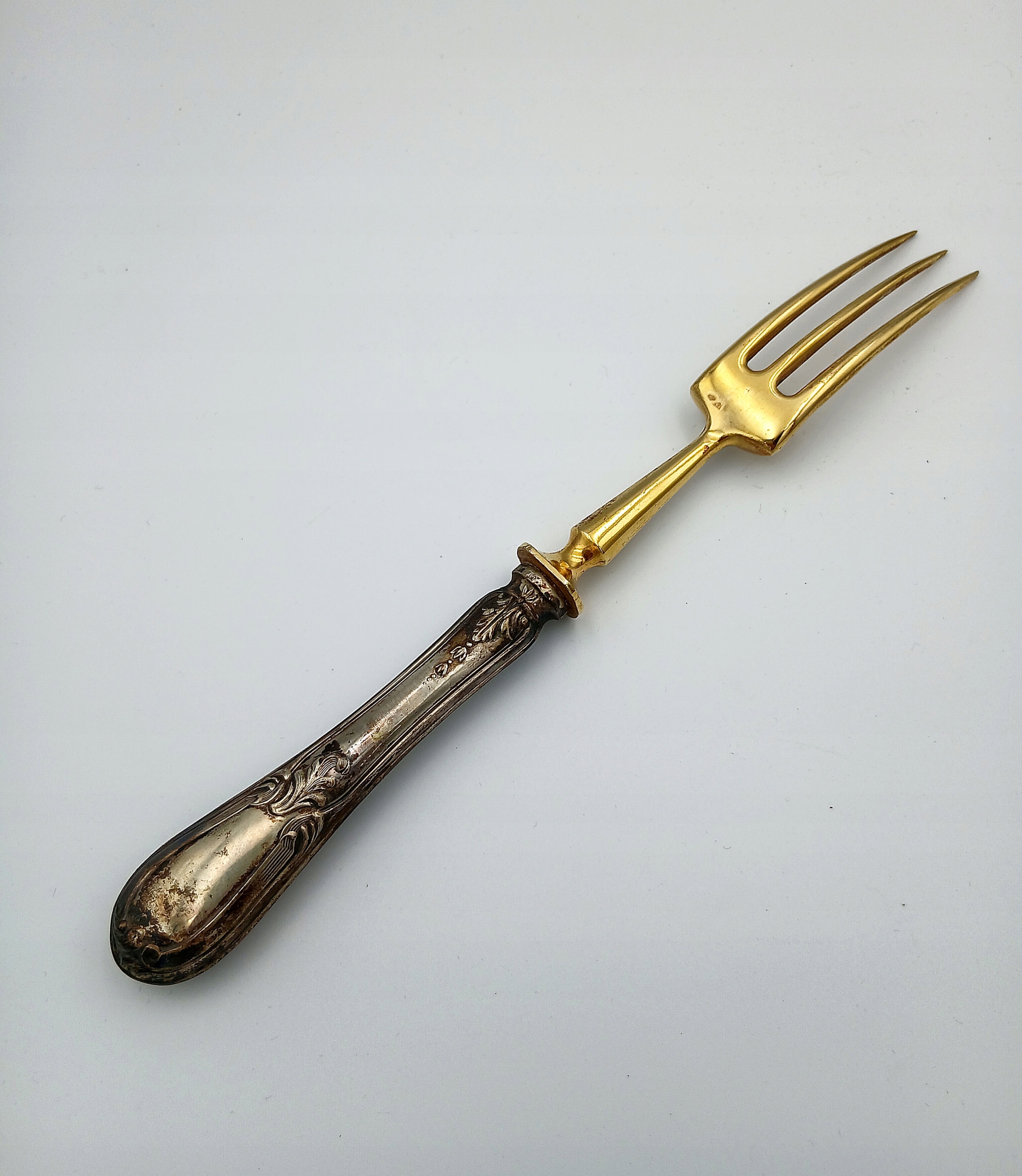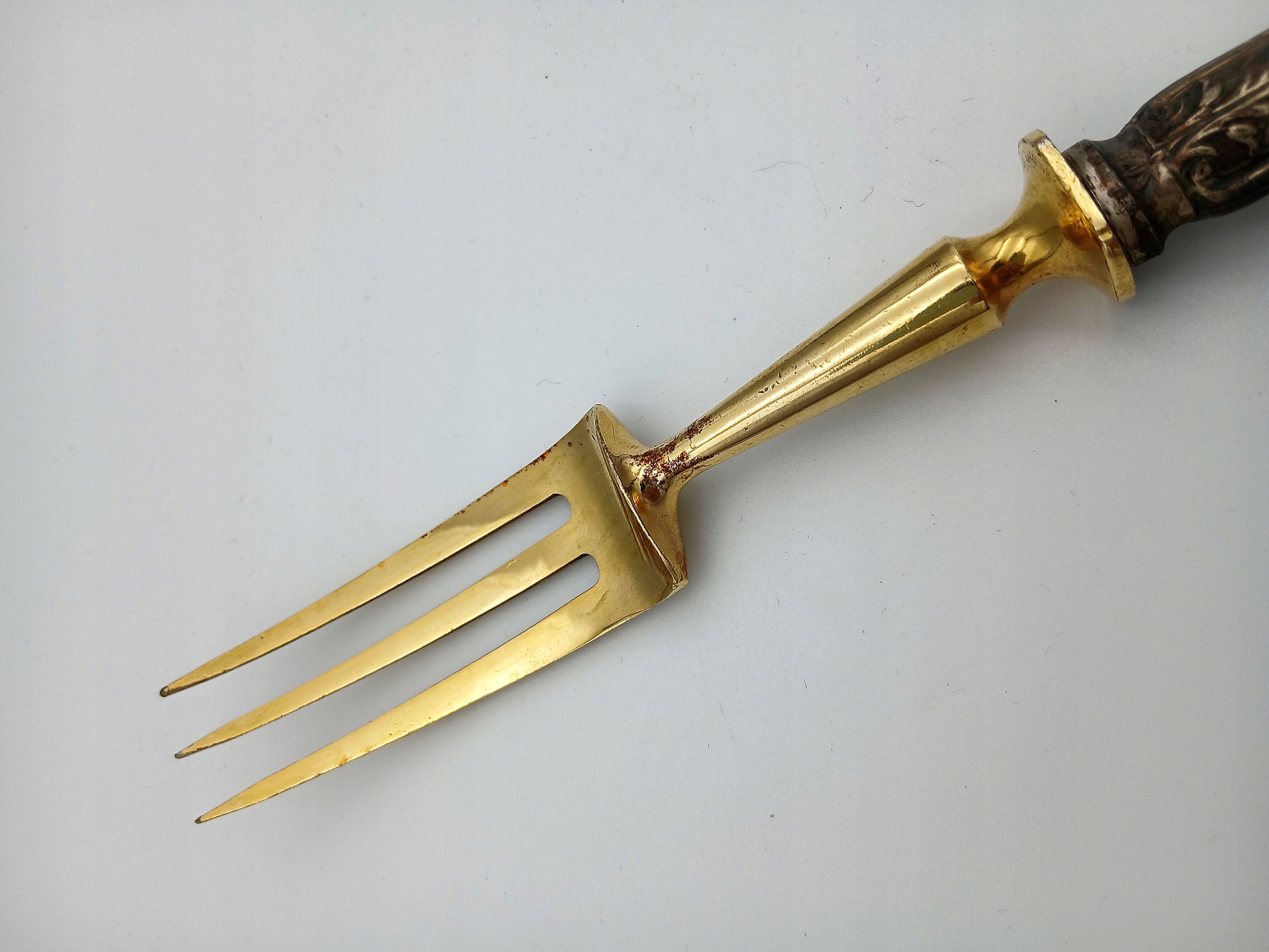 - Техника украшения: Тонкая гравировка растений на поверхности ножа и вилки, характерная для роскошных столовых приборов 1950 -х -60 -х годов. Из 20 -го века