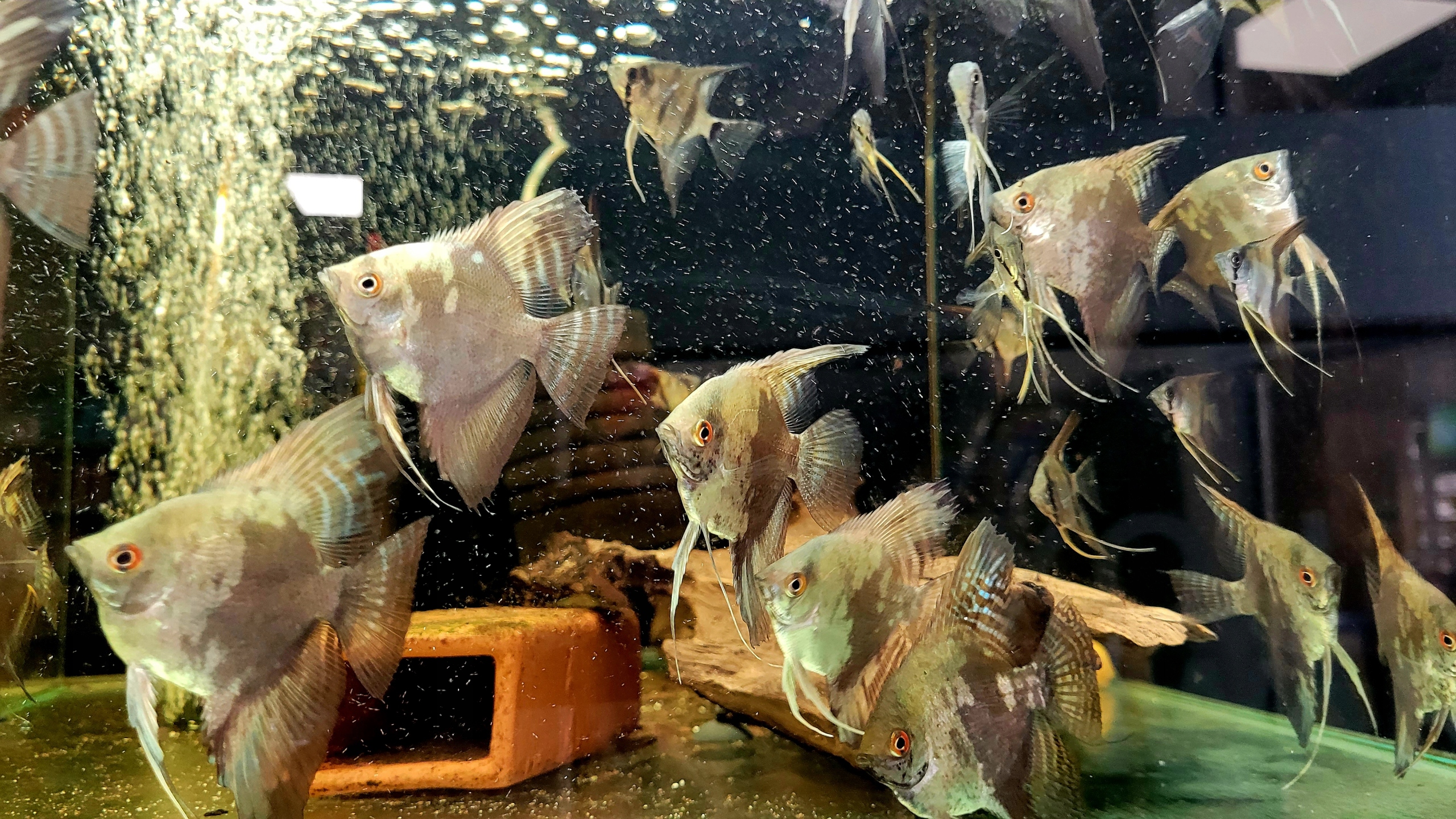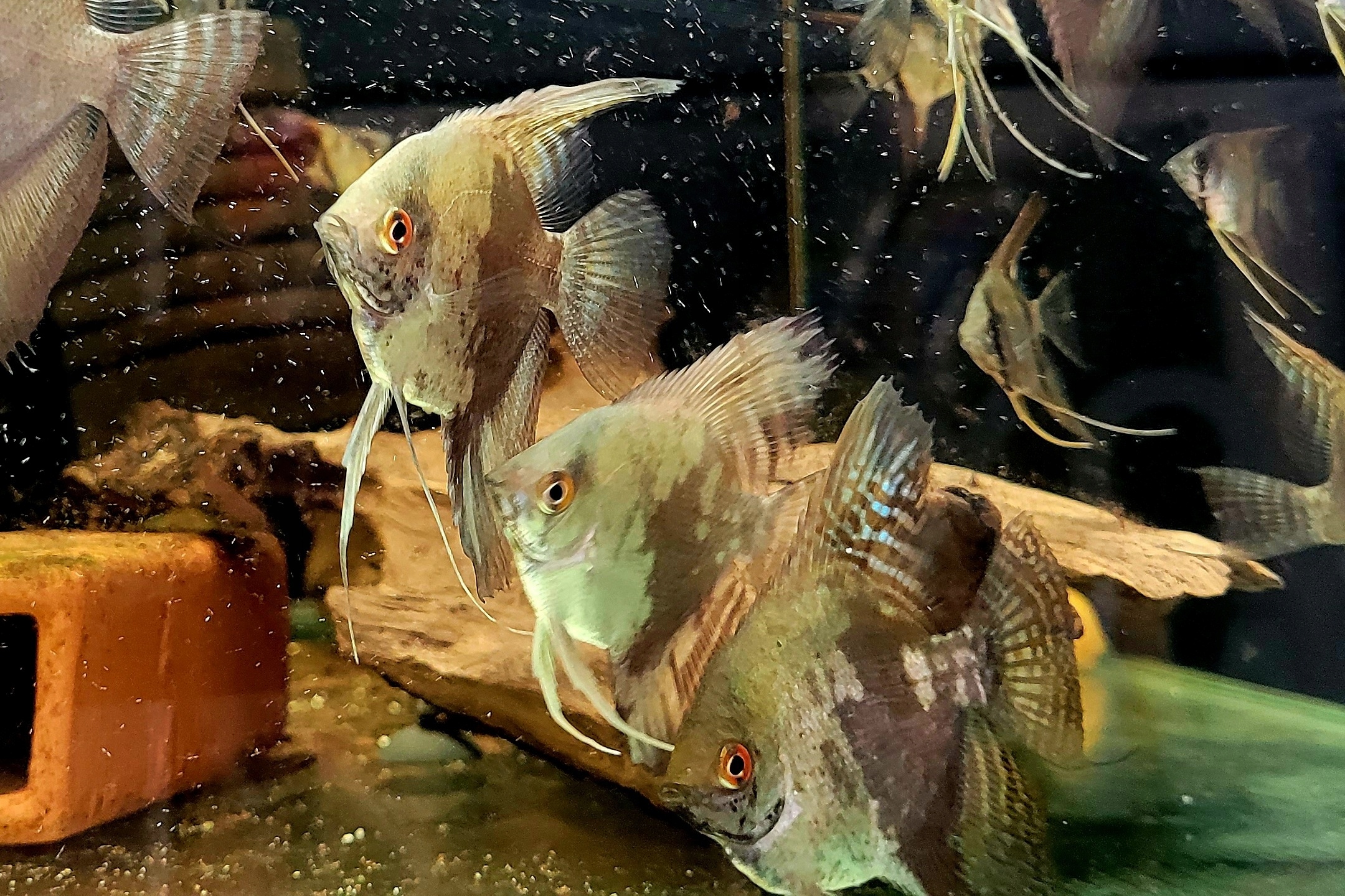 В природе скалярий населяет пойменные и болотистые участки, покрытые густой растительностью. Это прозрачные воды. Аквариум должен иметь слабый поток воды и быть густо засажен высокими лиственными растениями. Субстрат следует выбирать мелкозернистый (рыбки-ангелы любят перекапывать субстрат). Также стоит украсить резервуар, например, скрученными ветками, сухой древесиной или корнями. Это спокойная, но немного злющая рыба, общительная по своей природе (особи устанавливают между собой сложную иерархию). Рекомендуется держать группу не менее 5 человек. Он медленно передвигается, используя грудные плавники. Лучше всего содержать его в одновидовом аквариуме. Рыба с более высоким телом (например, рыба-бык) хорошо подойдет для содержания в общем аквариуме; следует избегать рыб торпедообразной формы, поскольку их легко съест рыба-ангел.