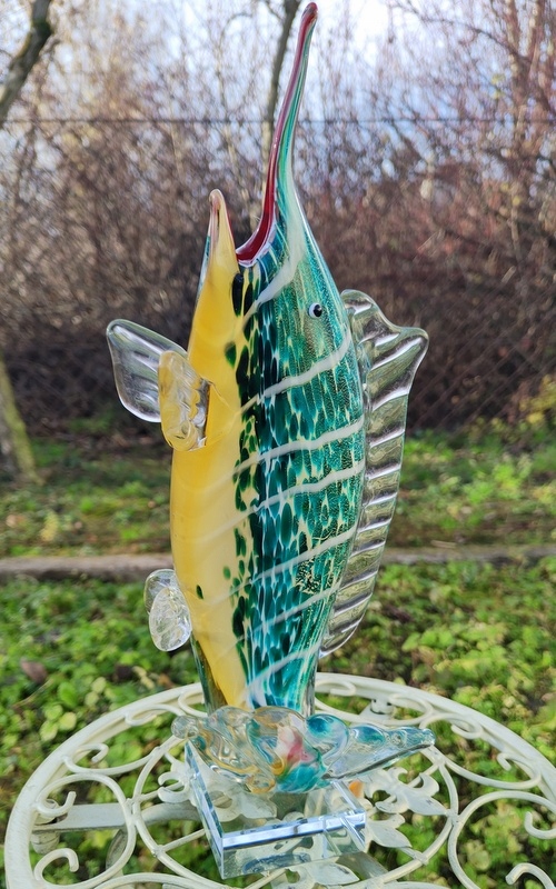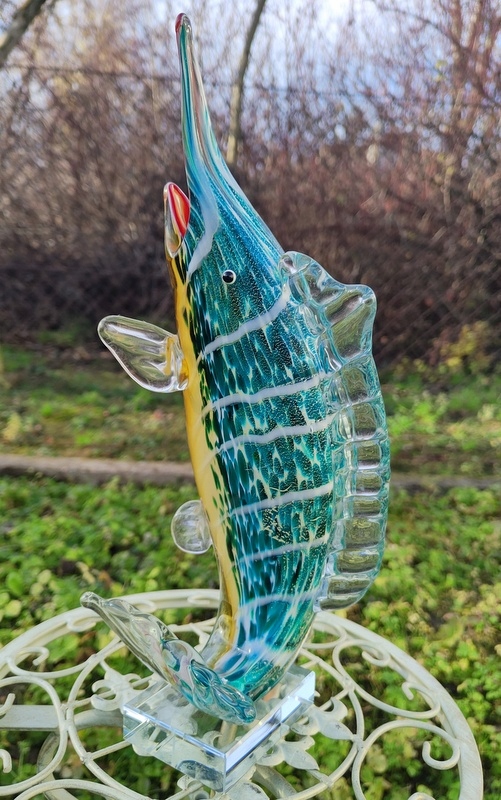 Статуэтка демонстрирует красоту такого чудесного существа, как рыба-парусник; отлично сделано. Пожалуйста, обратите особое внимание на точность его изготовления (выполнено в стиле итальянского Мурано) и уникальные цвета.