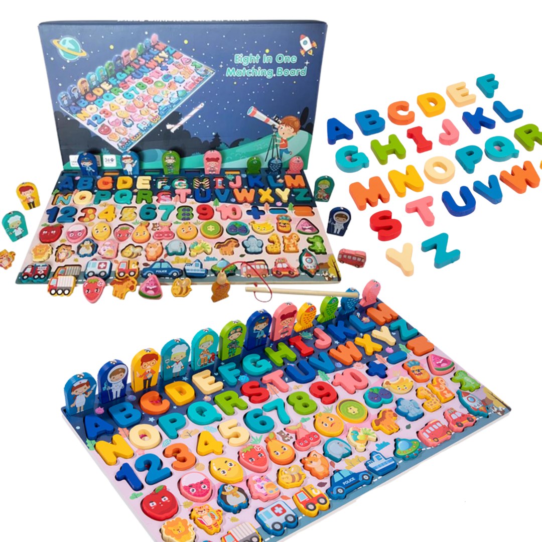 РИБАЛКА ДЕРЕВ'ЯНИЙ ЛОГІЧНИЙ ПАЗЛ ЦИФРИ БУКВИ АЛФАВІТ