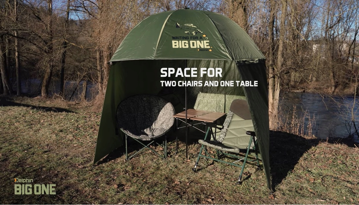 ✅ зонтик с боковыми стенами карпа Delphin Bigone - это универсальный, практический зонтик, который позволяет вам полностью наслаждаться свободным временем над водой в каждую погоду.